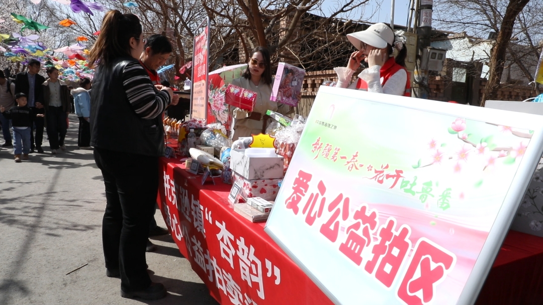 杏花烂漫处,爱心暖人心。连日来,托克逊县夏镇南湖村坎儿井巷人头攒动,一个特殊的摊位在花影中格外醒目——琳琅满目的衣物、生活用品整齐陈列,摊前的“爱心公益拍区”标识牌引人驻足。这是托克逊镇党员干部自发捐赠的650余件爱心物资,在杏花季期间设点销售,所得款项将全部用于帮扶辖区困难群众。