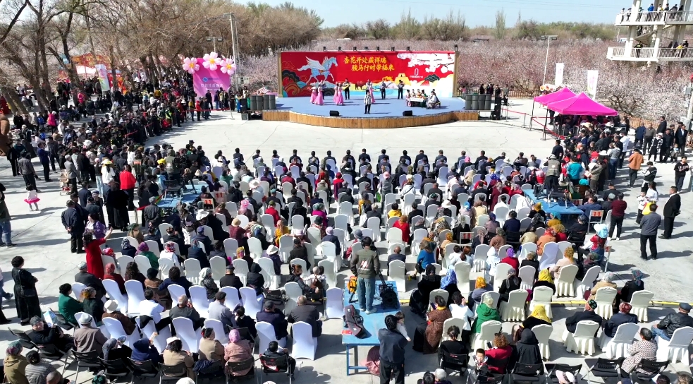 “新疆第一春花开吐鲁番”马上“杏”福等你来2026吐鲁番杏花季系列文旅消费活动开幕式现场(航拍)。托克逊县融媒体中心记者亚森江·麦麦提玉素甫摄