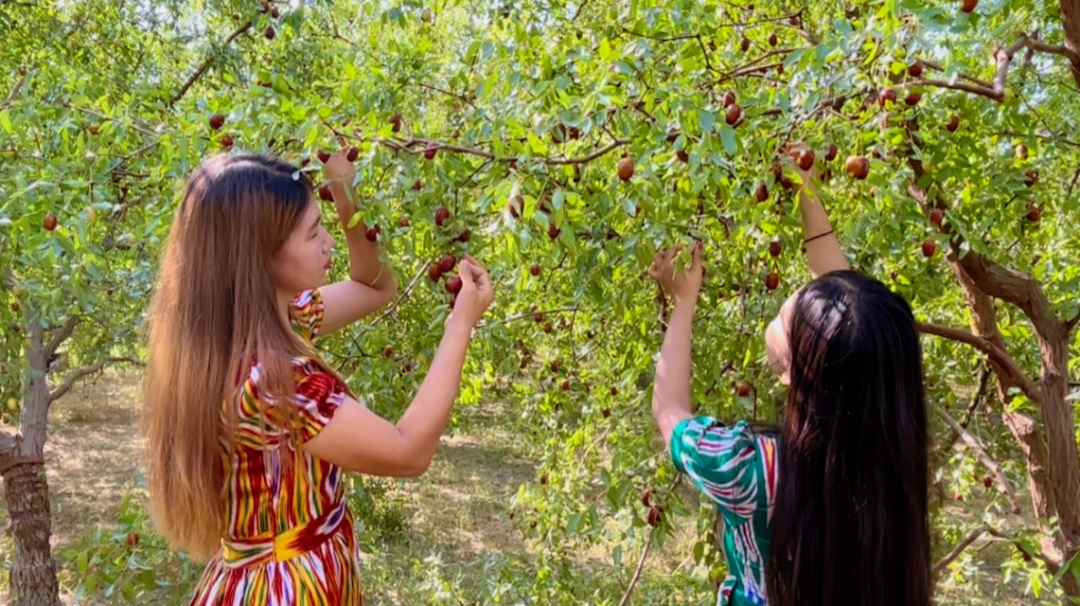 金秋时节,托克逊县博斯坦镇伯日布拉克村的红枣迎来丰收。