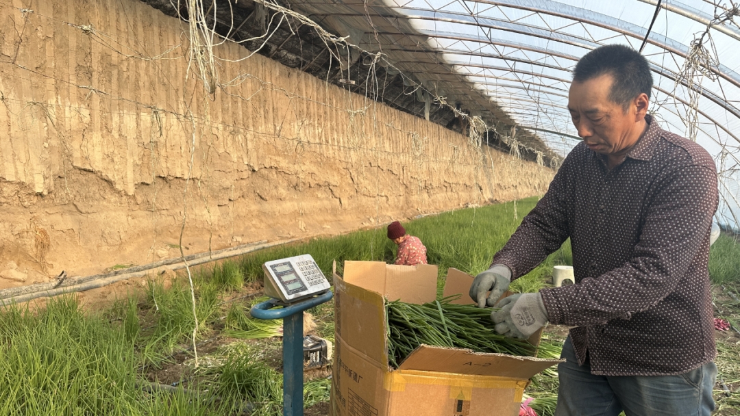 相邻种植户张林的大棚里,又是另一番丰收景象。一垄垄香葱郁郁葱葱、鲜嫩欲滴,翠绿的叶片透着勃勃生机。张林和家人分工协作,将分拣好的香葱整齐装箱,即将发往周边市场。“自从用上了县里推广的优良品种和科学管理方法,香葱、豇豆等农产品的产量比往年提高不少,收购价也稳定,这一棚菜能给家里多挣好几万元。”