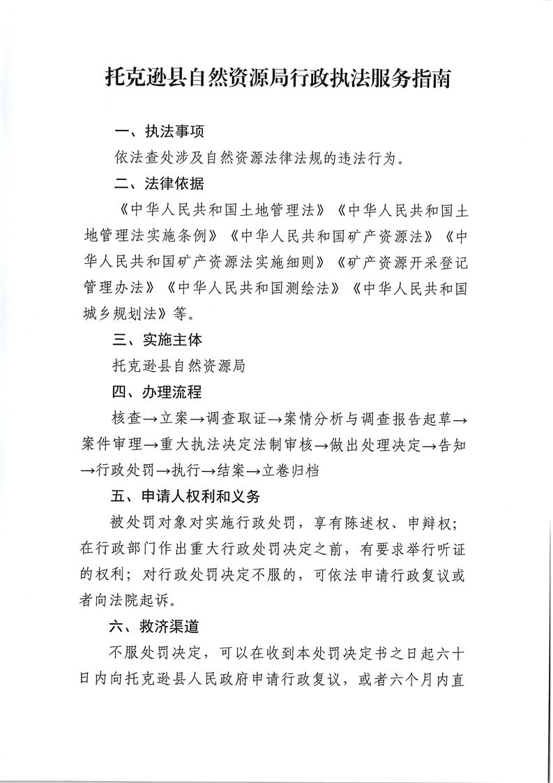 托克逊县自然资源局行政执法服务指南
