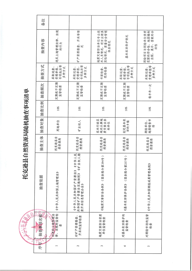 托克逊县自然资源局随机抽查事项情况
