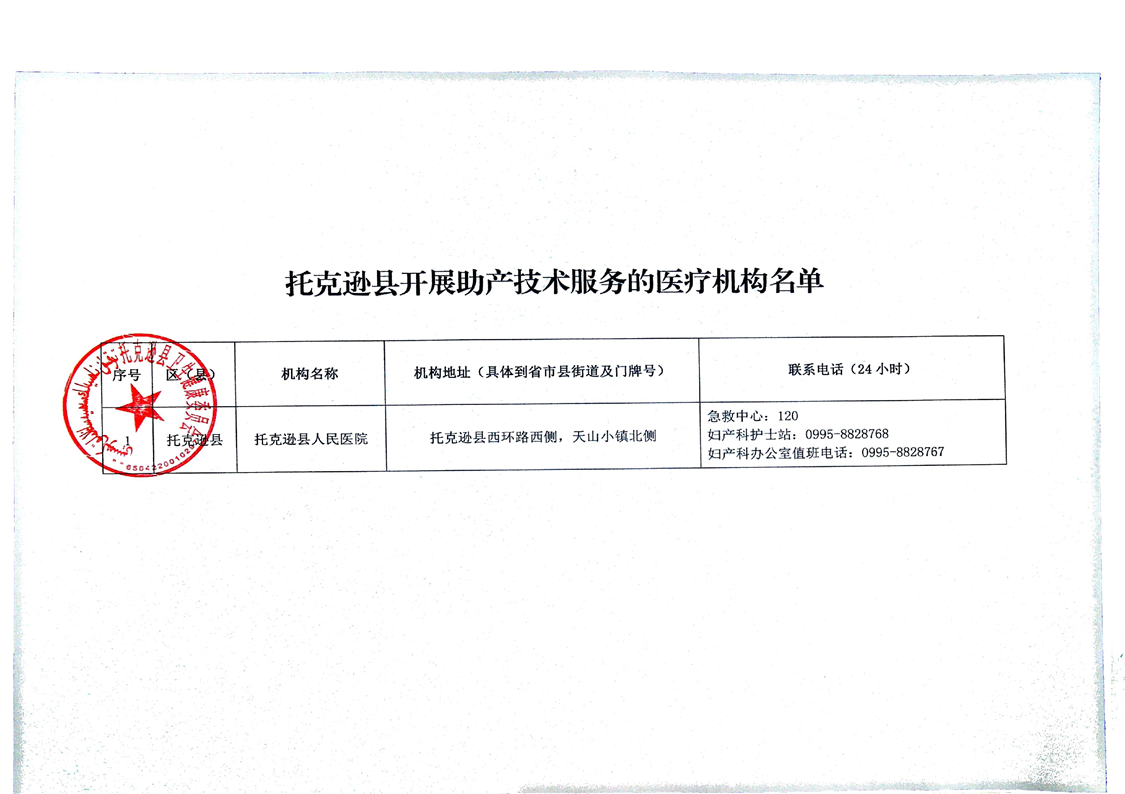托克逊县开展助产技术服务的医疗机构名单