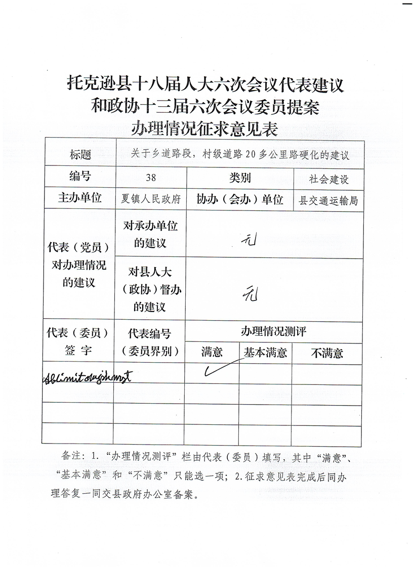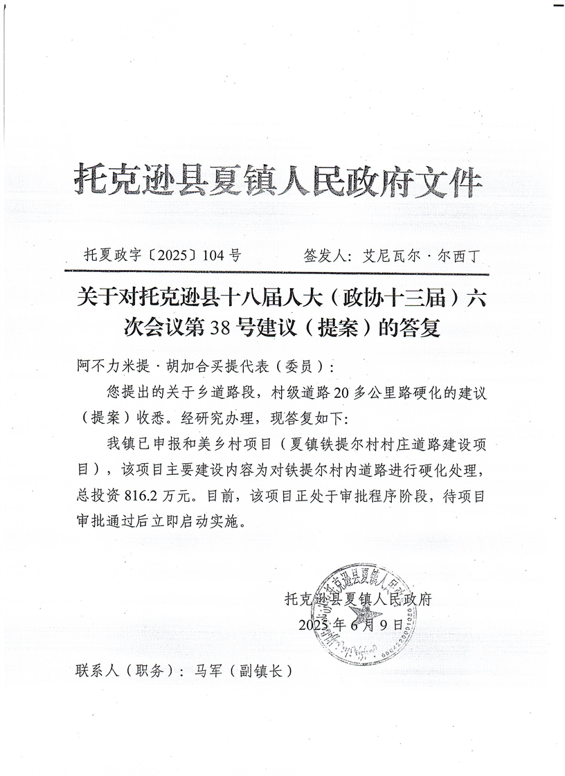 2025年托克逊县十八届人大(政协十三届)第六次会议38号建议答复情况