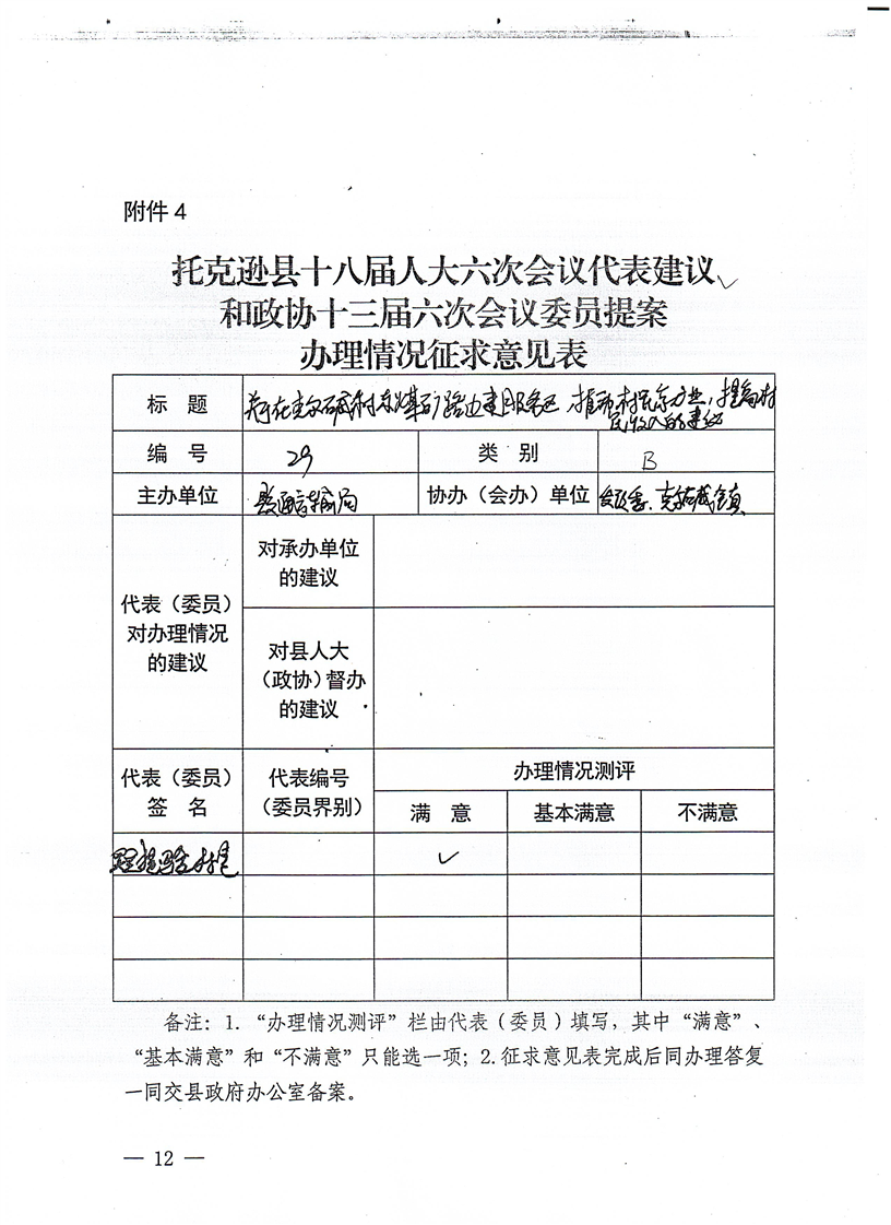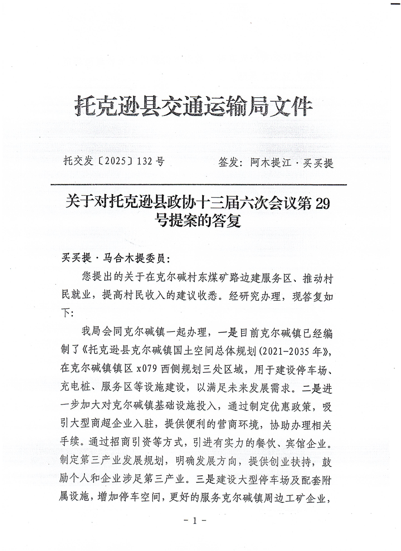 2025年托克逊县第十三届政治协商会议第六次会议29号提案答复情况