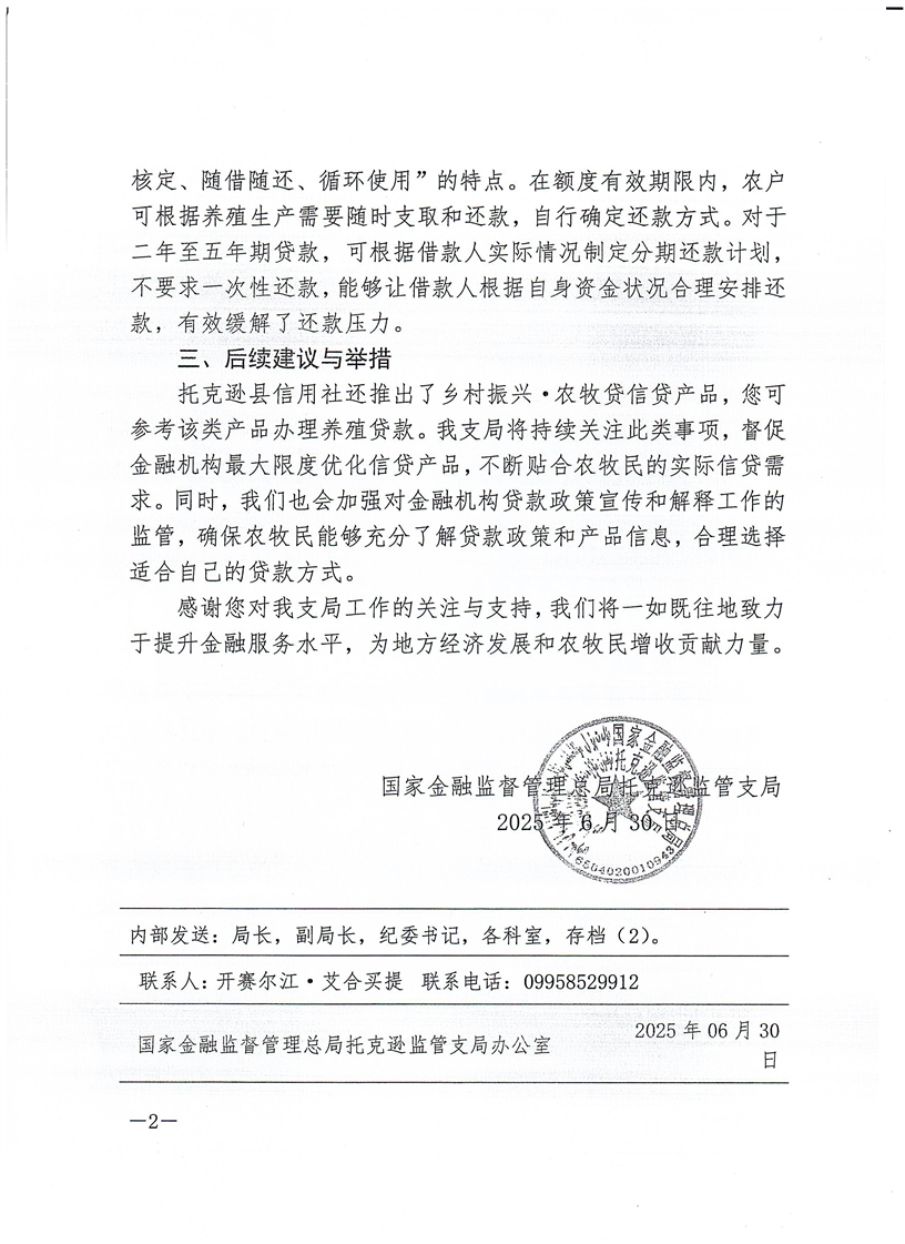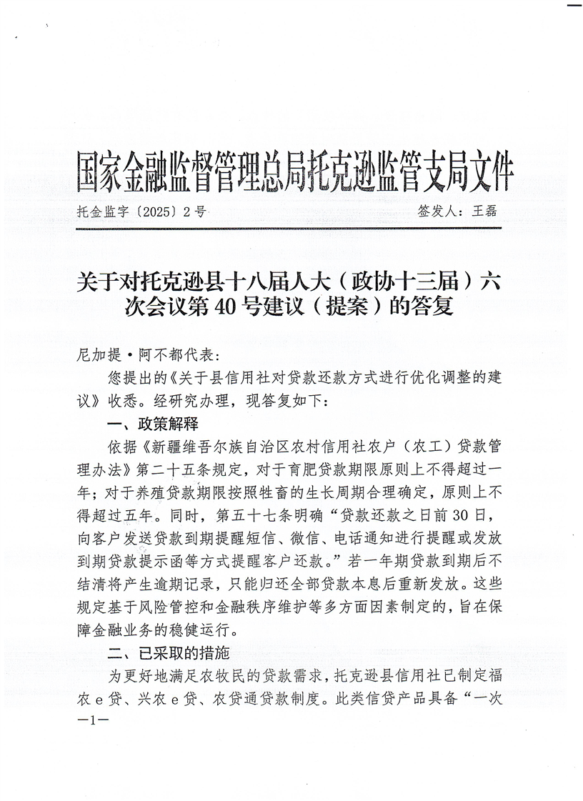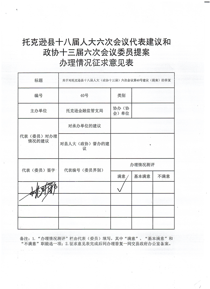2025年托克逊县十八届人大(政协十三届)第六次会议40号建议答复情况
