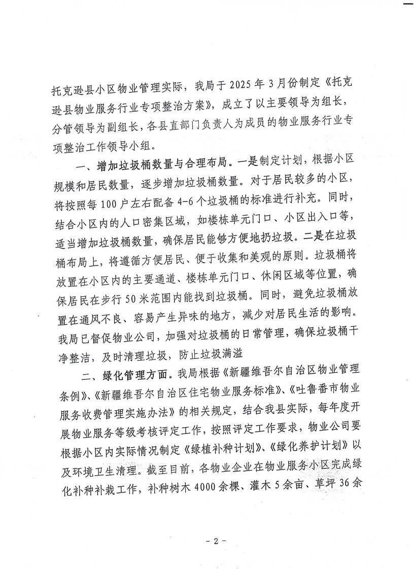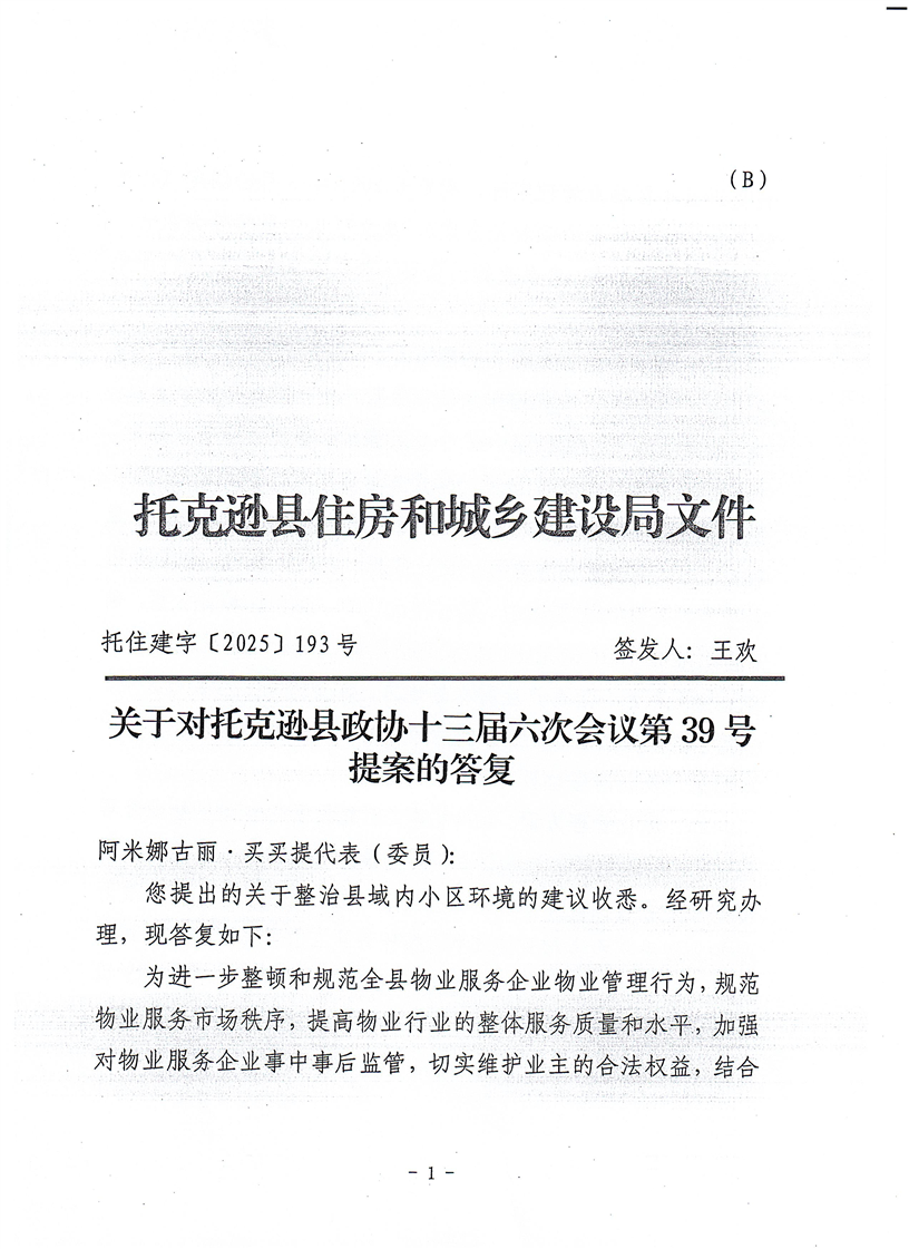 2025年托克逊县第十三届政治协商会议第六次会议39号提案答复情况