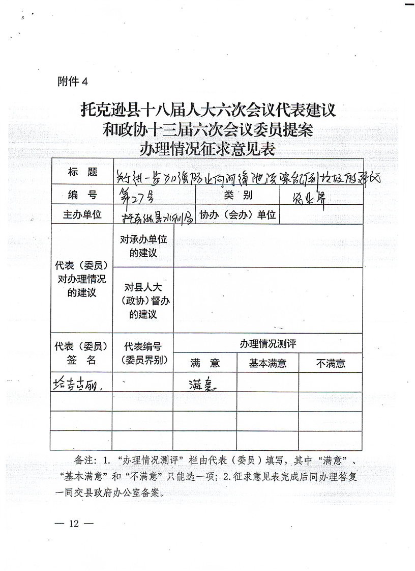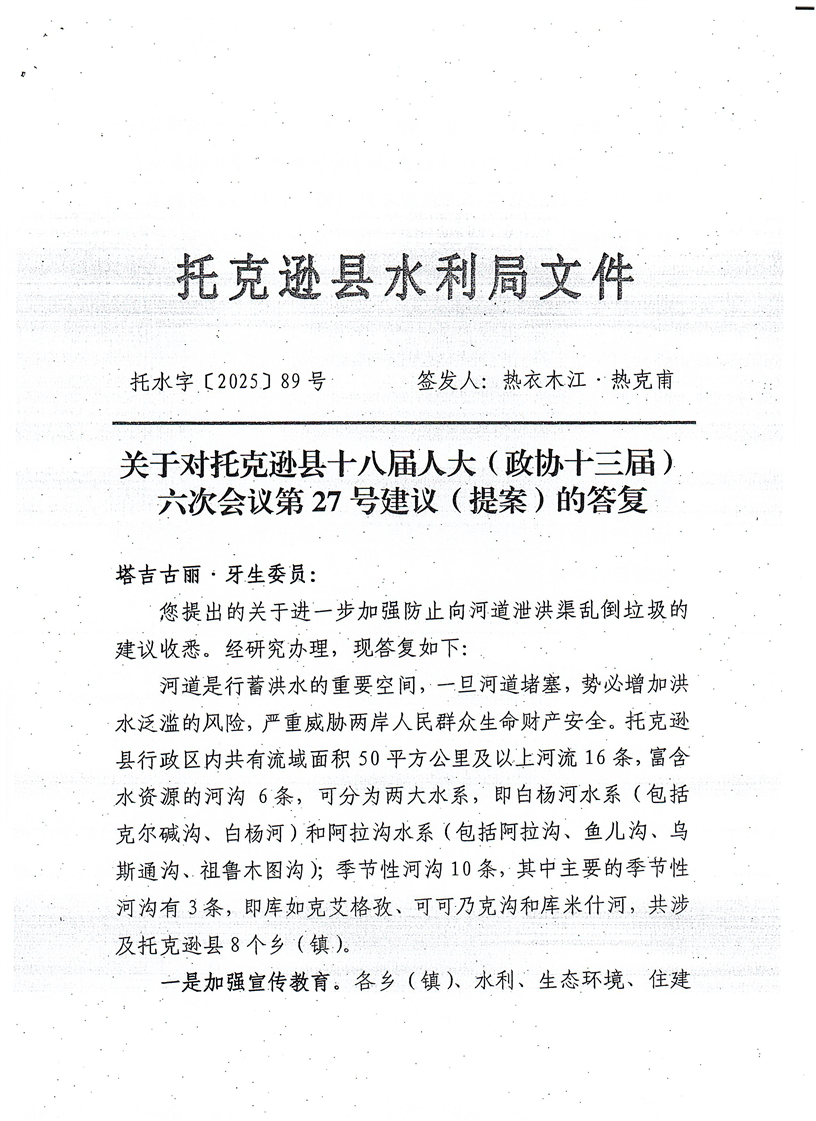 2025年托克逊县十八届人大(政协十三届)第六次会议27号建议答复情况