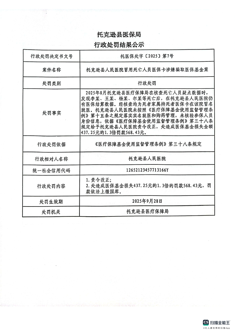 托克逊县人民医院冒用死亡人员医保卡涉嫌骗取医保基金案
