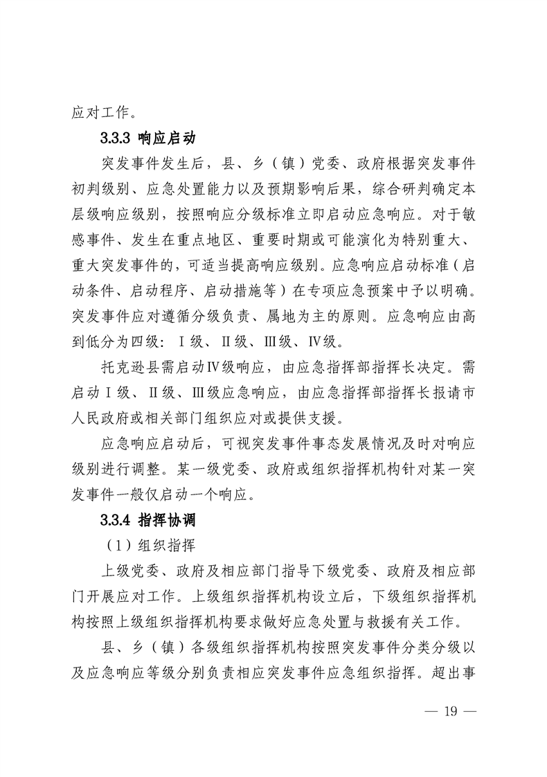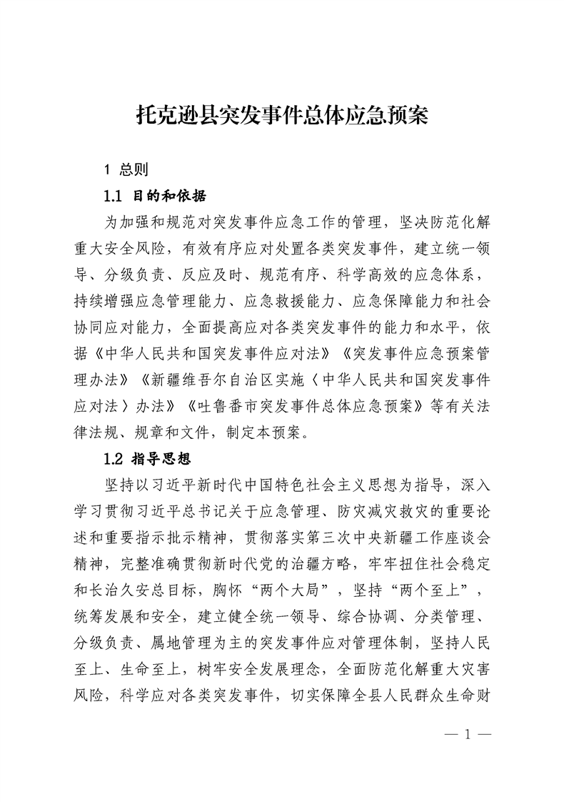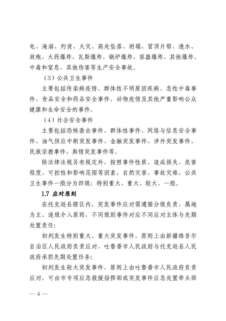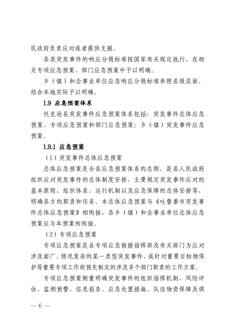 关于印发《托克逊县突发事件总体应急预案》的通知