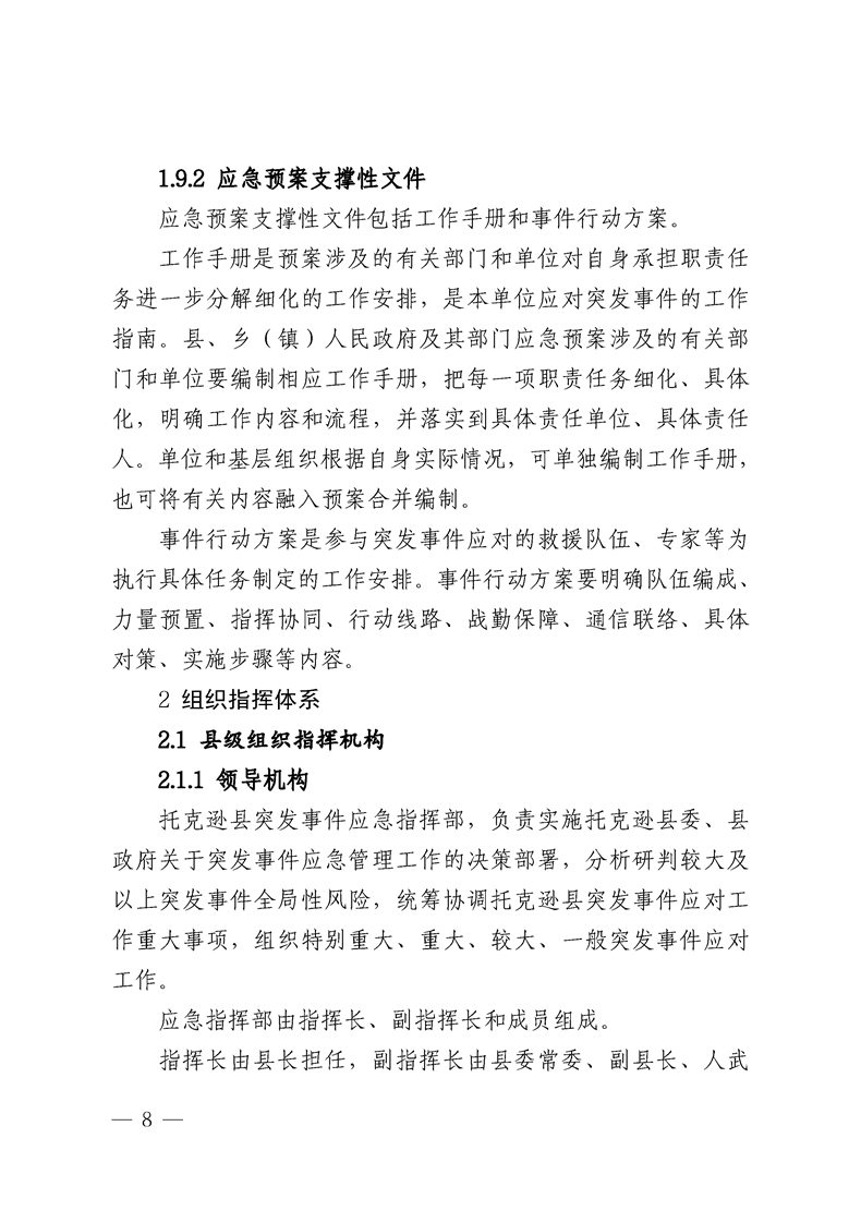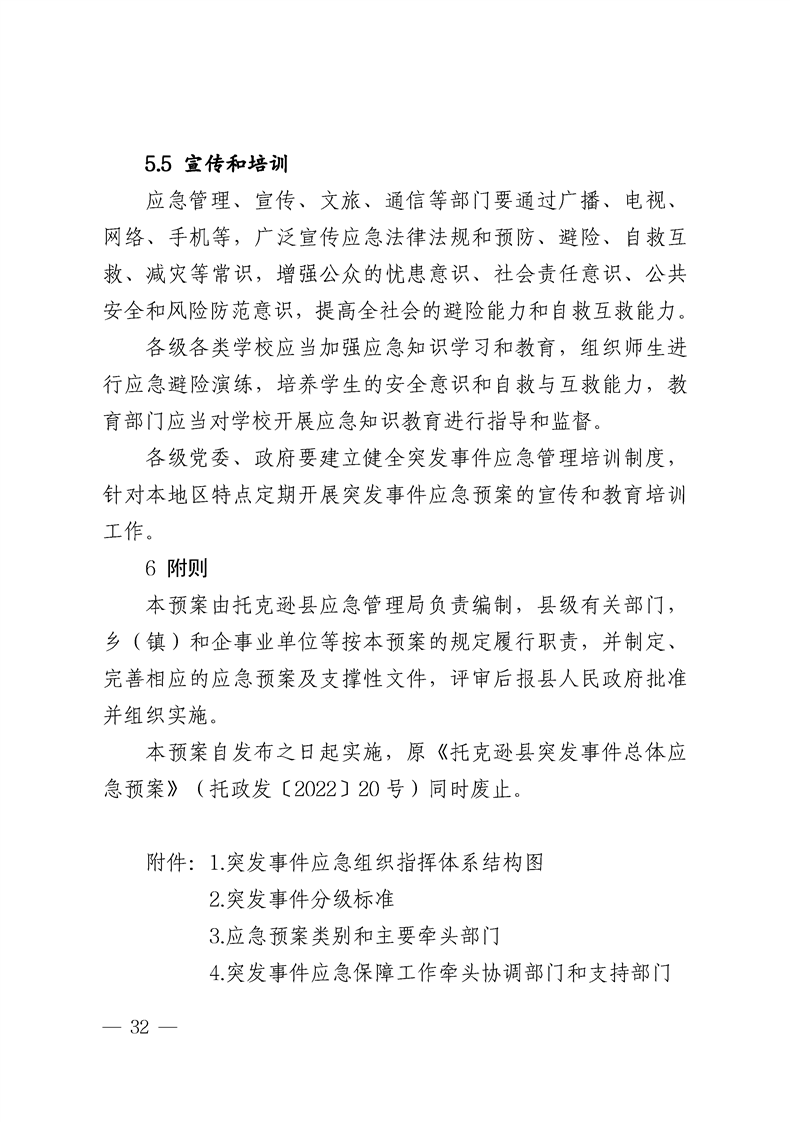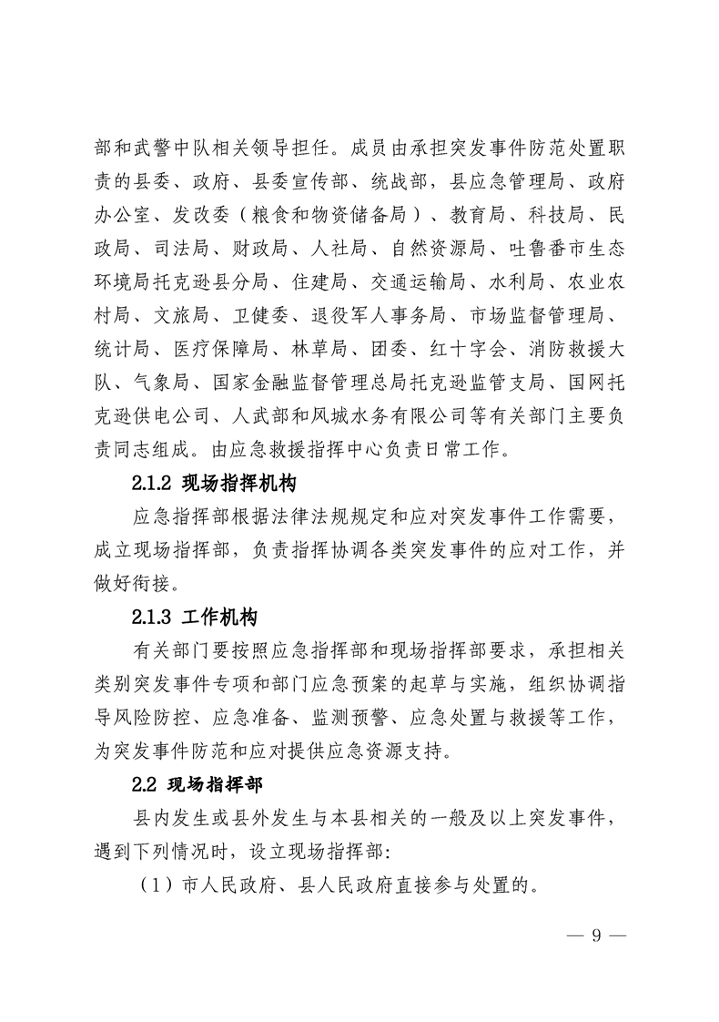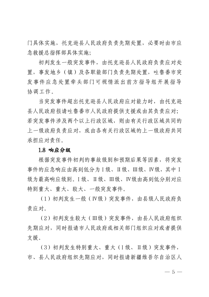 关于印发《托克逊县突发事件总体应急预案》的通知