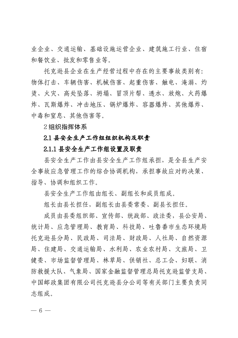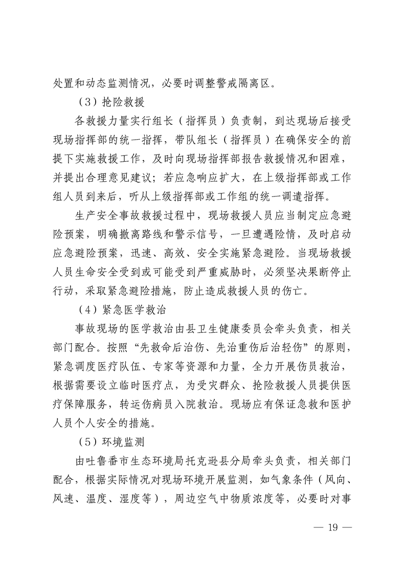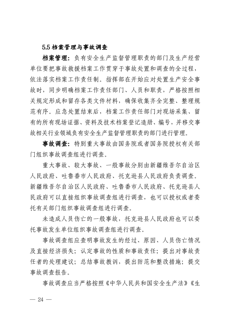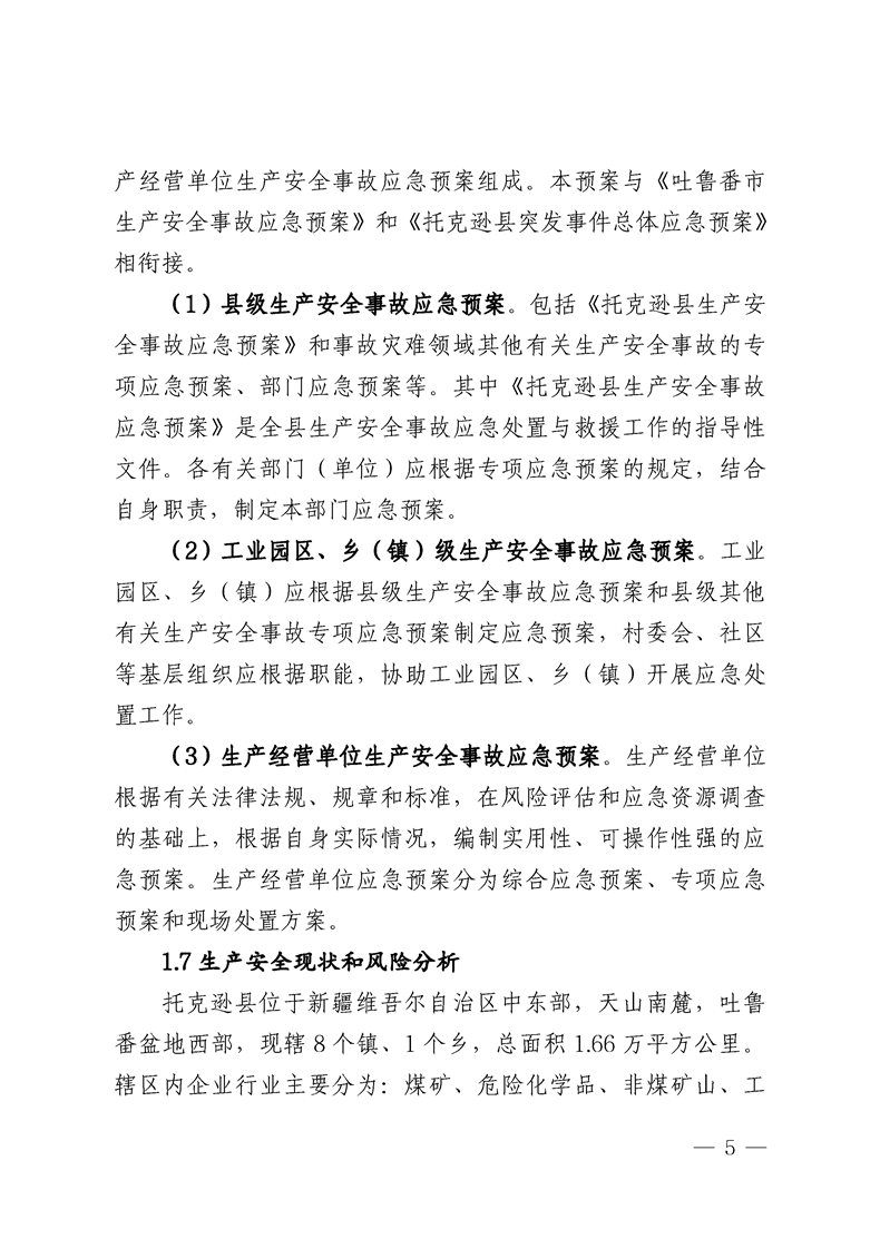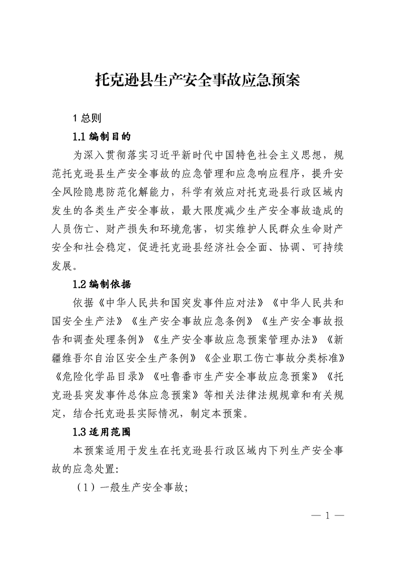 关于印发《托克逊县生产安全事故应急预案》的通知(
