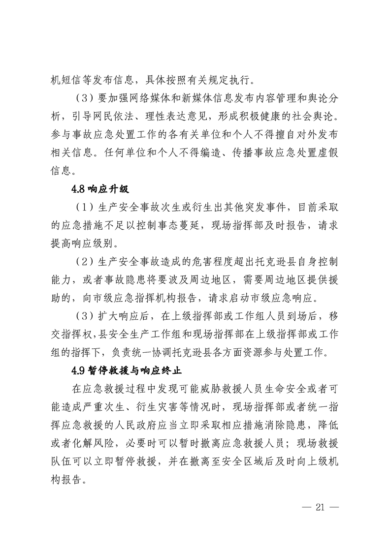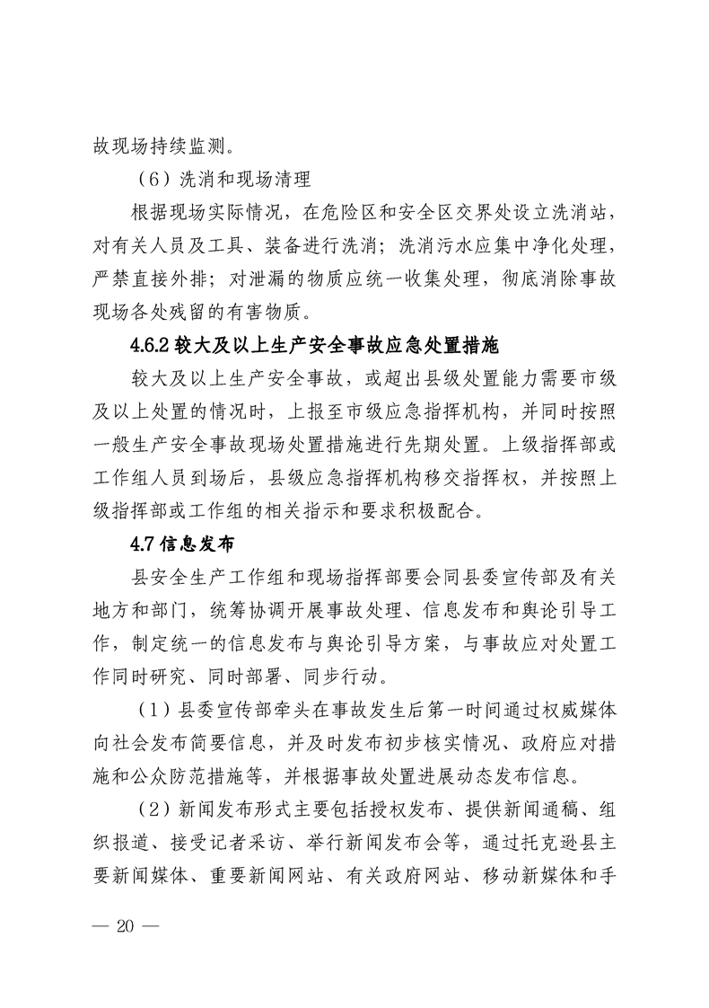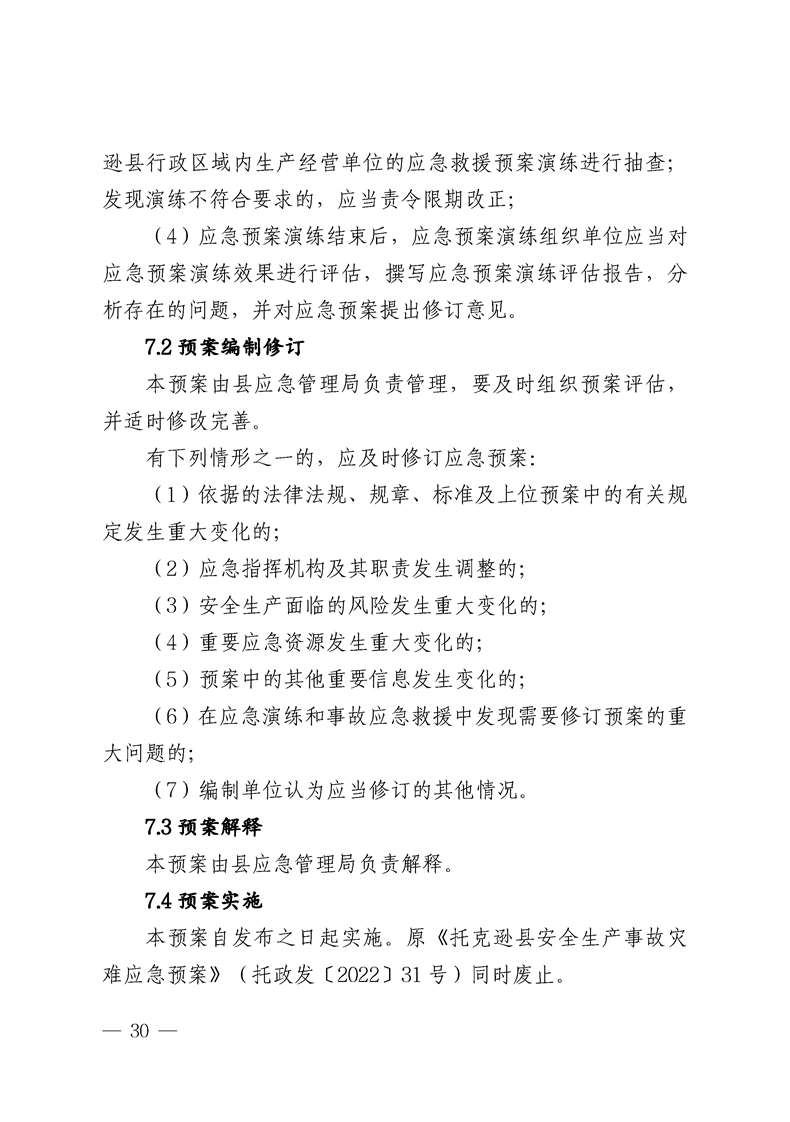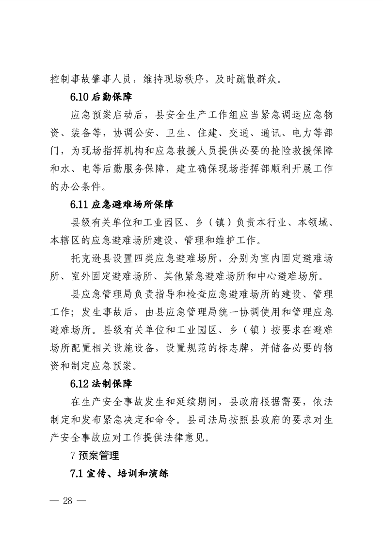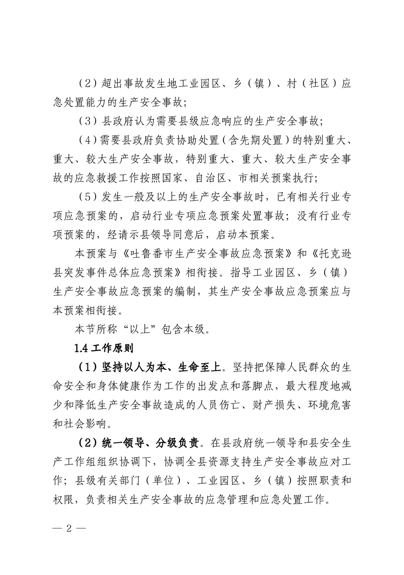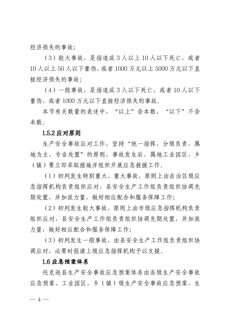 关于印发《托克逊县生产安全事故应急预案》的通知(