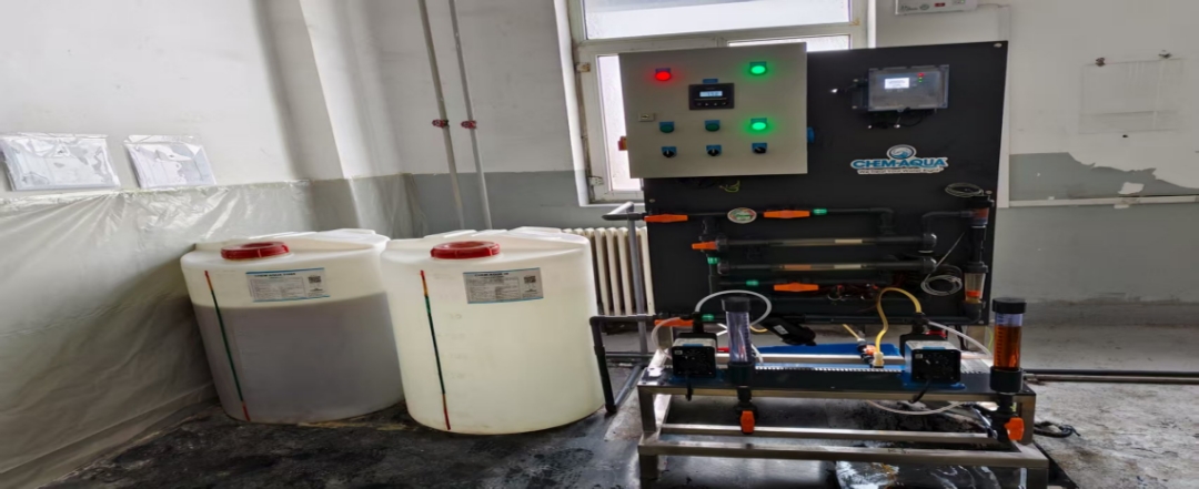 改造前,1、2号装置循环水系统长期依赖人工方式进行每周一次的冲击性药剂投加。该方式存在明显弊端,一方面药剂浓度在投加后迅速衰减,仅约4小时即降至控制下限,无法持续维持系统水质稳定。另一方面,人工操作过程中存在较高的灼烫风险,对岗位人员安全构成潜在威胁。