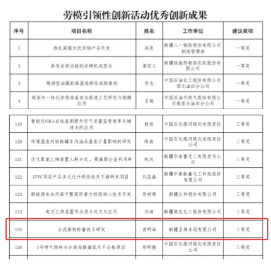近日,从自治区总工会职工创新活动评审会传来喜讯,圣雄能源水泥分公司申报的“水泥高效粉磨技术的研发与应用”项目,在激烈的竞争中脱颖而出,荣获劳模引领性优秀创新成果三等奖!这一沉甸甸的奖项,不仅是对项目技术含金量的高度认可,更是对公司在技术创新与绿色发展的道路上不懈努力的最佳褒奖。