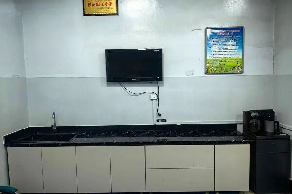 办票室是员工日常办理工作票、短暂休憩的重要场所,但原有设施因年久失修,问题日益凸显。柜门破损变形、开关异响,水槽排水不畅,积水返味,影响环境与心情。为彻底改善员工体验,发电车间管理组主动牵头成立专项小组,经实地调研与意见征集,制定了“功能实用、环境美观”的改造方案,更换破损柜门为防潮耐用的白色烤漆面板,搭配黑色大理石台面,简洁大方,改造排水系统,加装滤网,根治积水异味。引入集温水、热水、冷水于一体的智能茶吧机,支持定量取水与温度调节,贴心满足多样饮水需求。