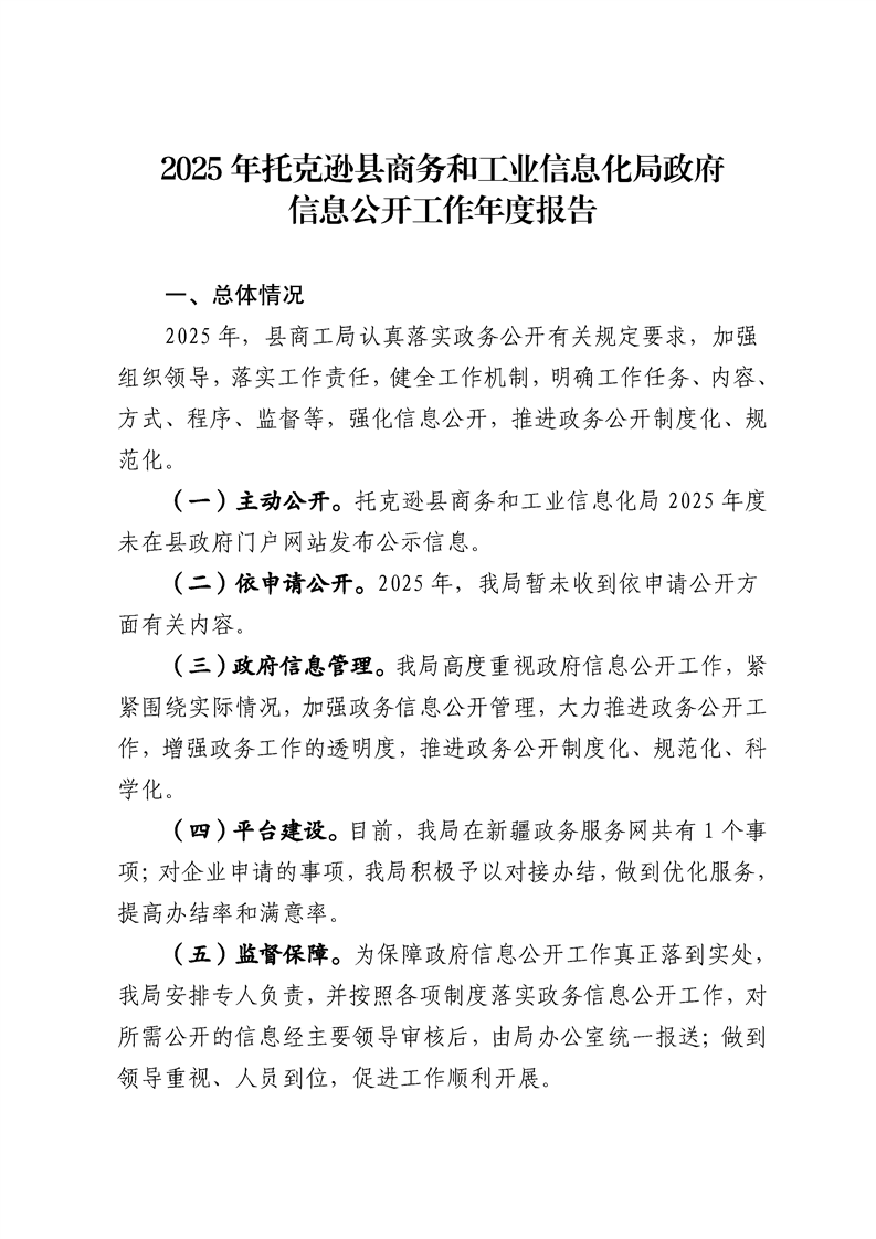 2025年托克逊县商务和工业信息化局政府信息公开工作年度报告