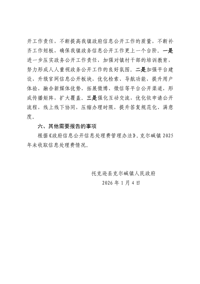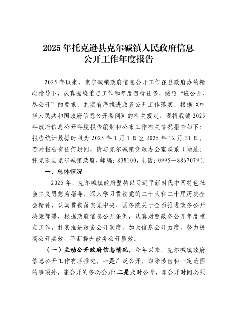 2025年托克逊县克尔碱镇人民政府信息公开工作年度报告