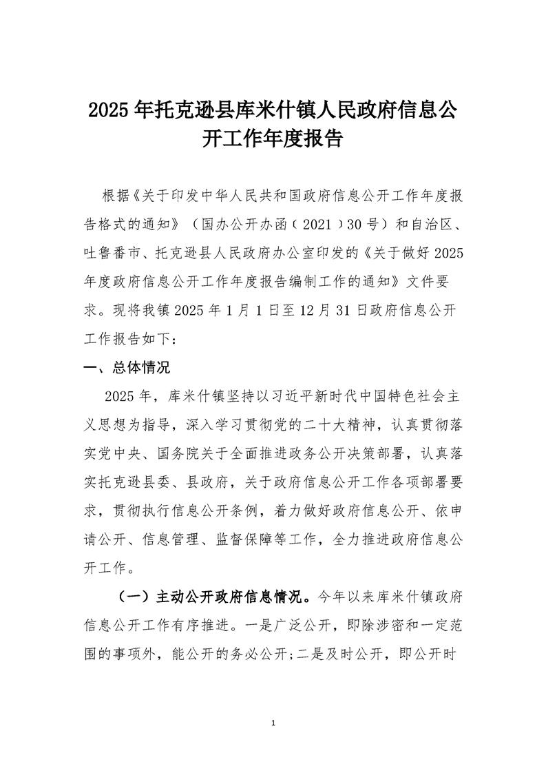 2025年托克逊县库米什镇人民政府信息公开工作年度报