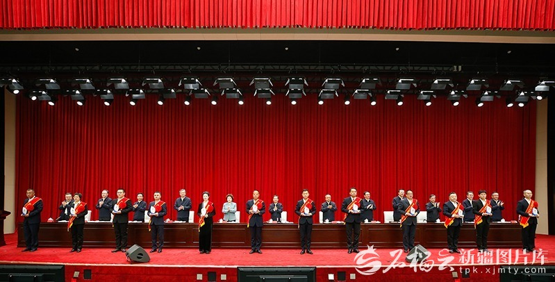 自治区党委副书记、自治区主席艾尔肯·吐尼亚孜,自治区人大常委会主任祖木热提·吾布力,自治区政协主席努尔兰·阿不都满金,自治区党委副书记、兵团政委何忠友,自治区党委副书记张柱、陈明国出席。
