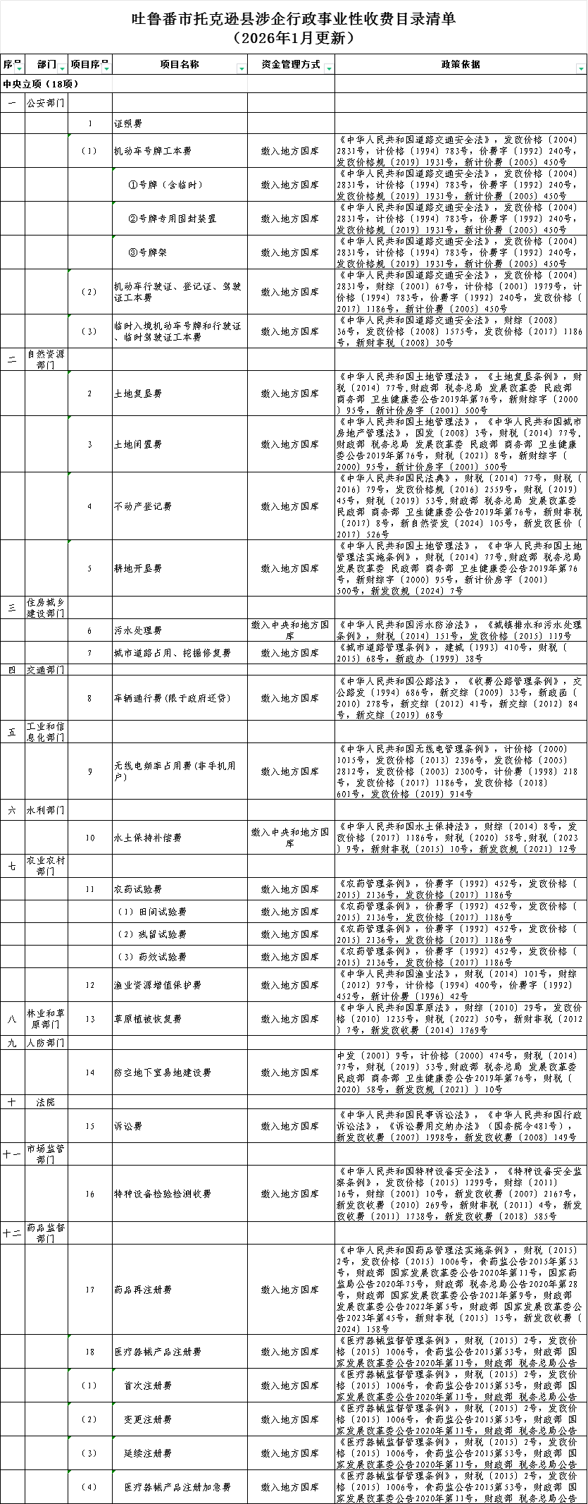 吐鲁番市托克逊县涉企行政事业性收费目录清单