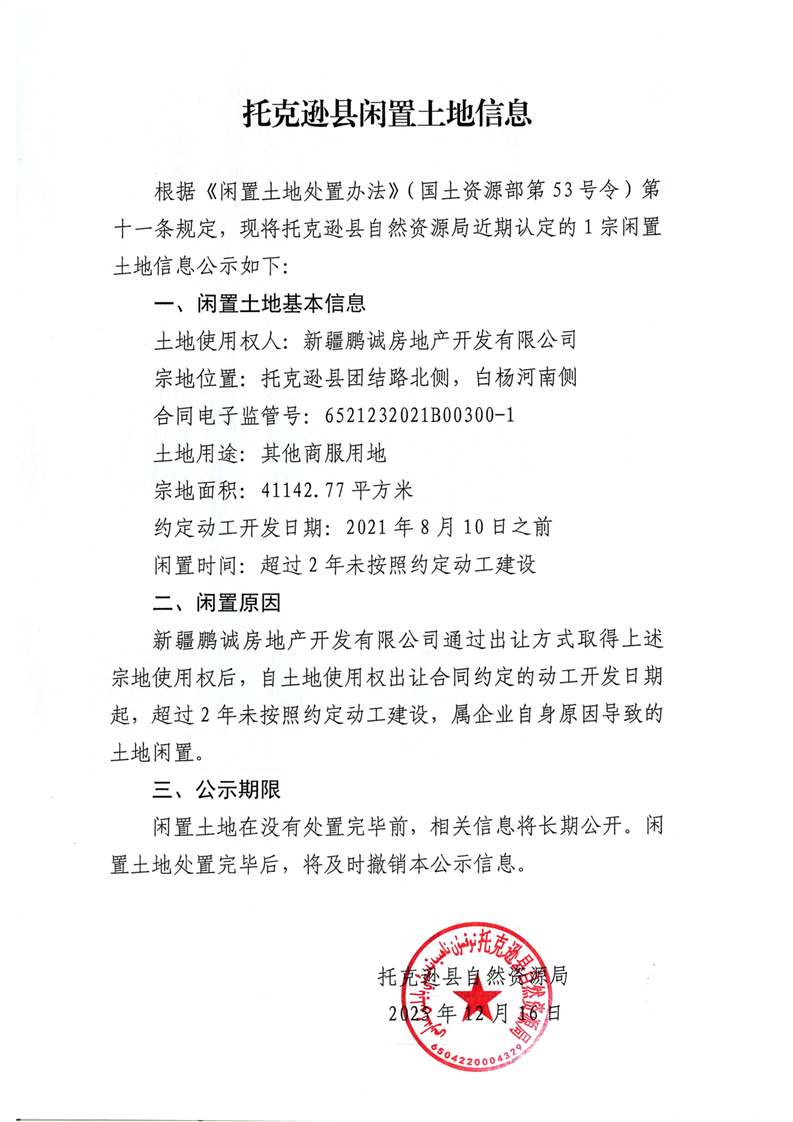 托克逊县闲置土地信息公示